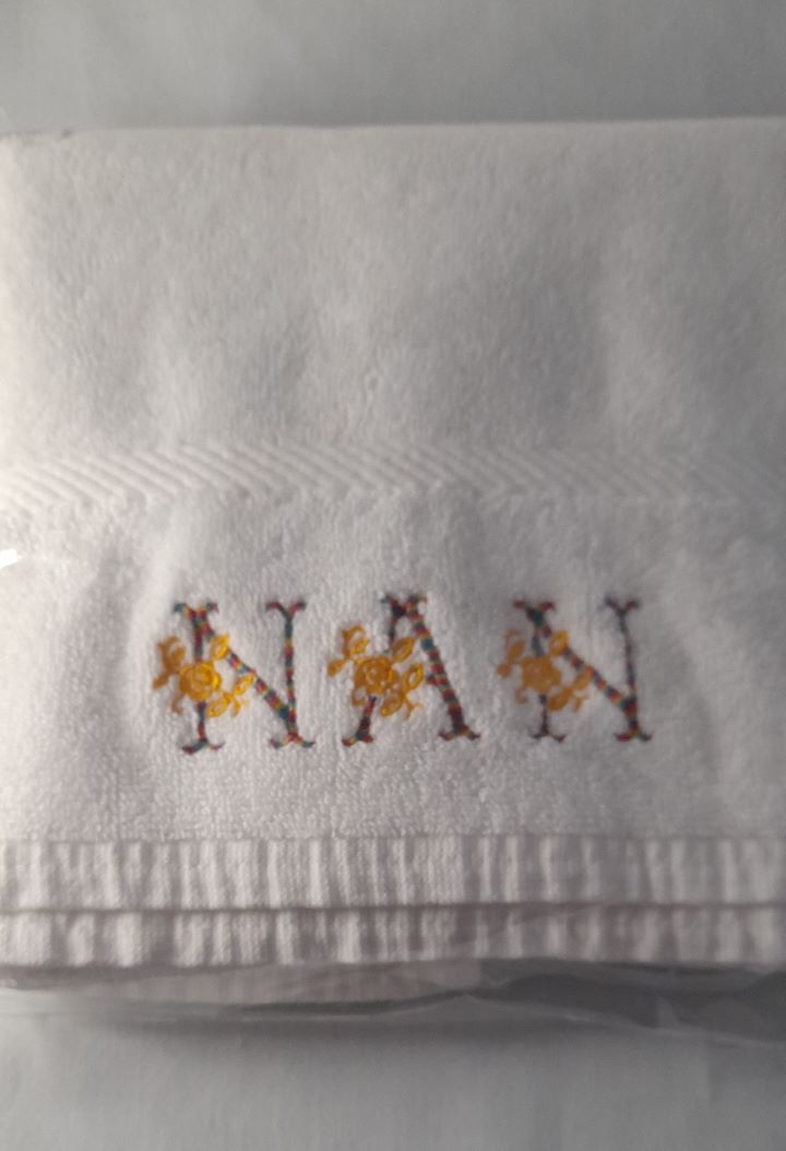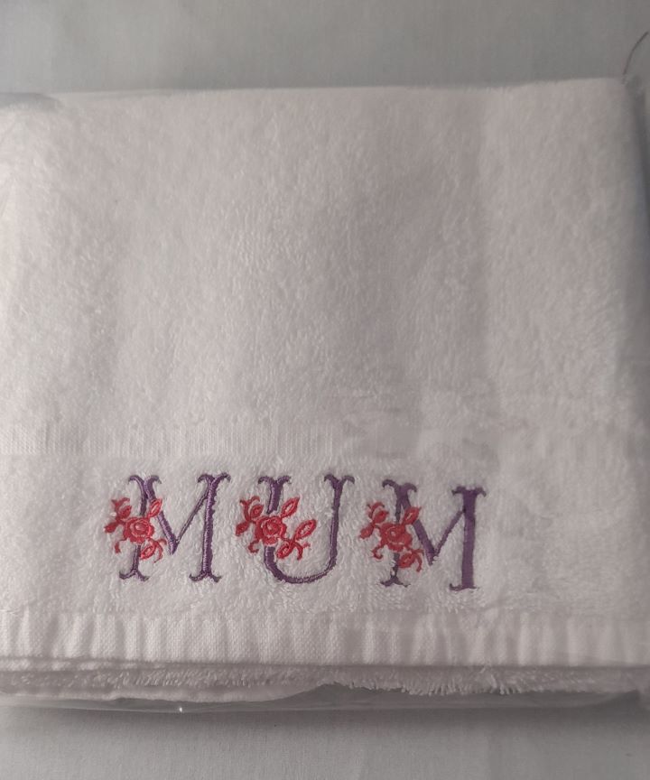 Treat your female loved ones to a special gift with our floral design hand Towel . This personalised item allows you to choose from a variety of word/ names of your choice . for example such as Mum, Nan, Aunt, Niece, Mummy, Nanny, and more.
